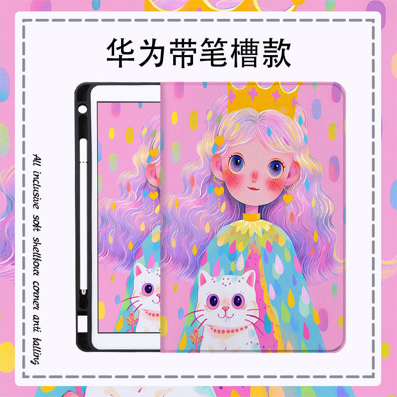 公主和猫适用华为平板matepadpro保护畅享8.4寸m5青春版7保护套10.4可爱m6皮套m3卡通v6硅胶书本10.8荣耀C5