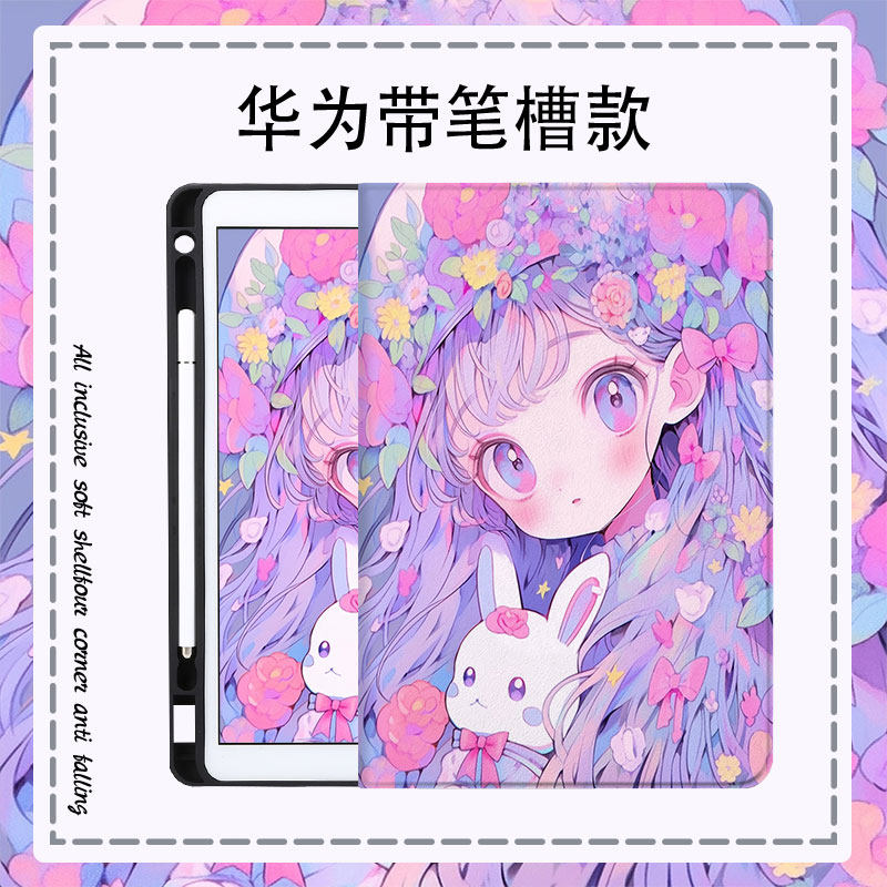 动漫女孩适用华为平板matepadpro保护畅享8.4寸m5青春版7保护套10.4可爱m6皮套m3卡通v6硅胶书本10.8荣耀C5