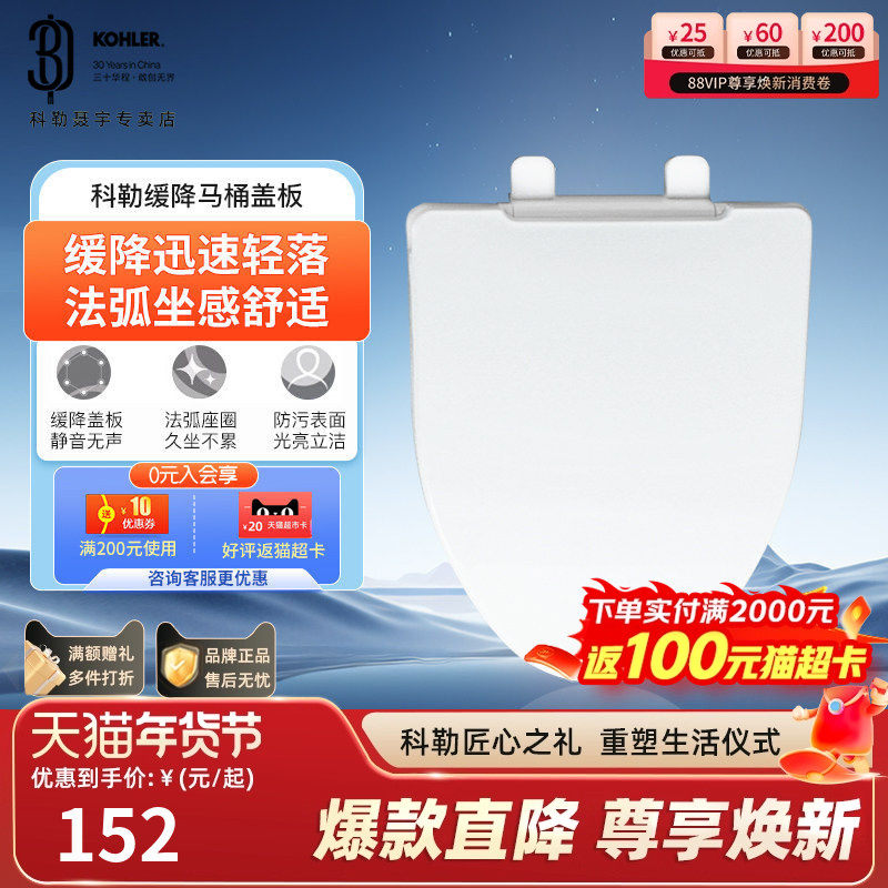 科勒kohler马桶盖原装缓降坐便器盖板配件3857适配瑞琦3834/3991