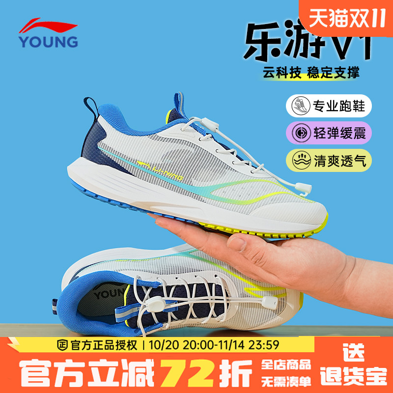 李宁儿童跑步鞋男孩2025新款飞云V2男童网面透气跑鞋青少年运动鞋