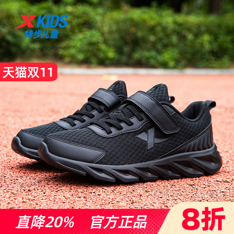 特步童鞋男童鞋子儿童运动鞋2025新款中大童黑色秋季网面透气跑鞋