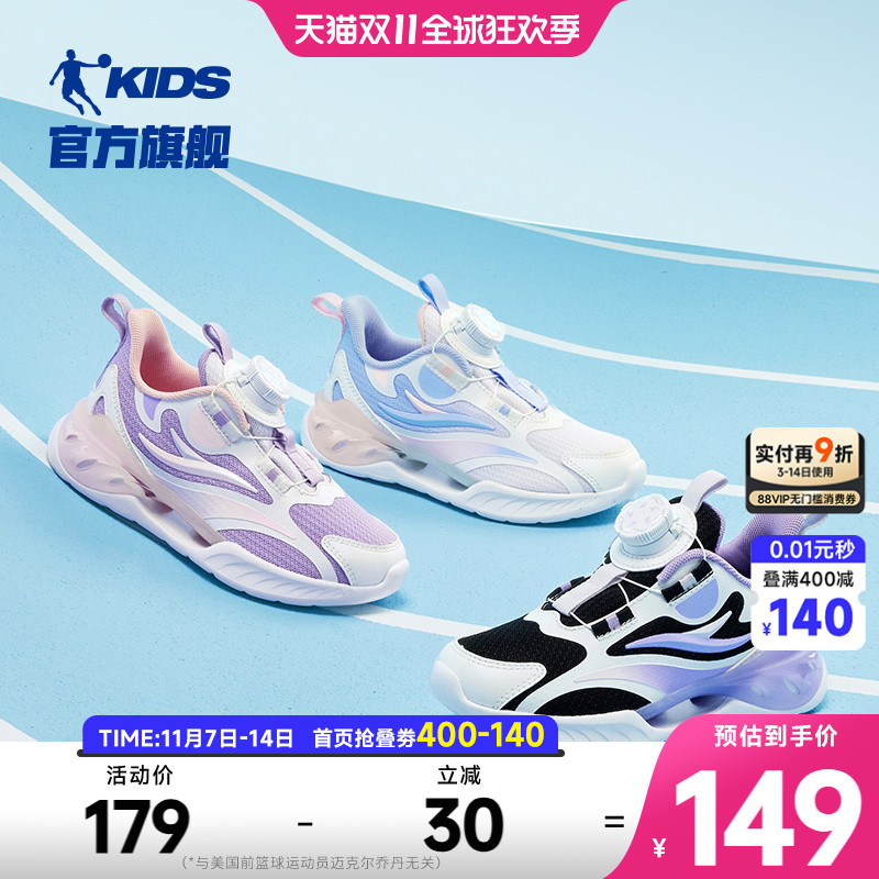 轻风乔丹童鞋儿童运动鞋女童2025春秋网面透气跑鞋旋钮扣小童鞋子