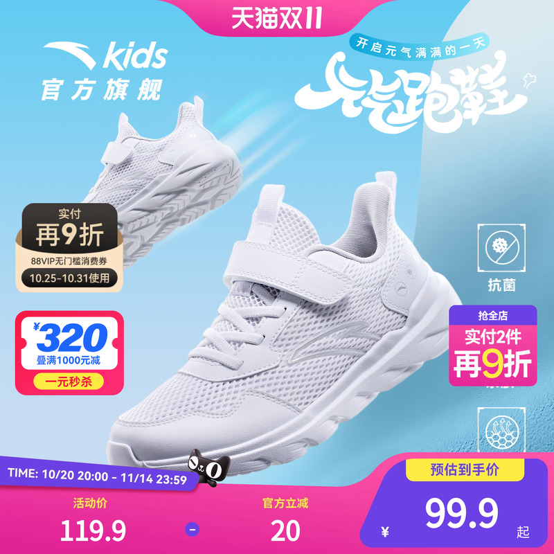 安踏男童鞋2025春季新款大小童网面透气跑鞋轻便防滑运动鞋小白鞋