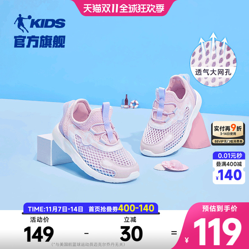 乔丹童鞋女童鞋子2025夏季新款婴小童轻便网面透气跑鞋儿童运动鞋
