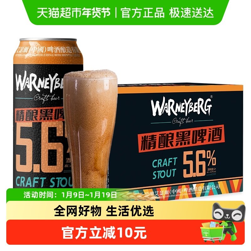 Warney Berg/沃尼伯格14度全麦精酿黑啤酒500ml*12听整箱装