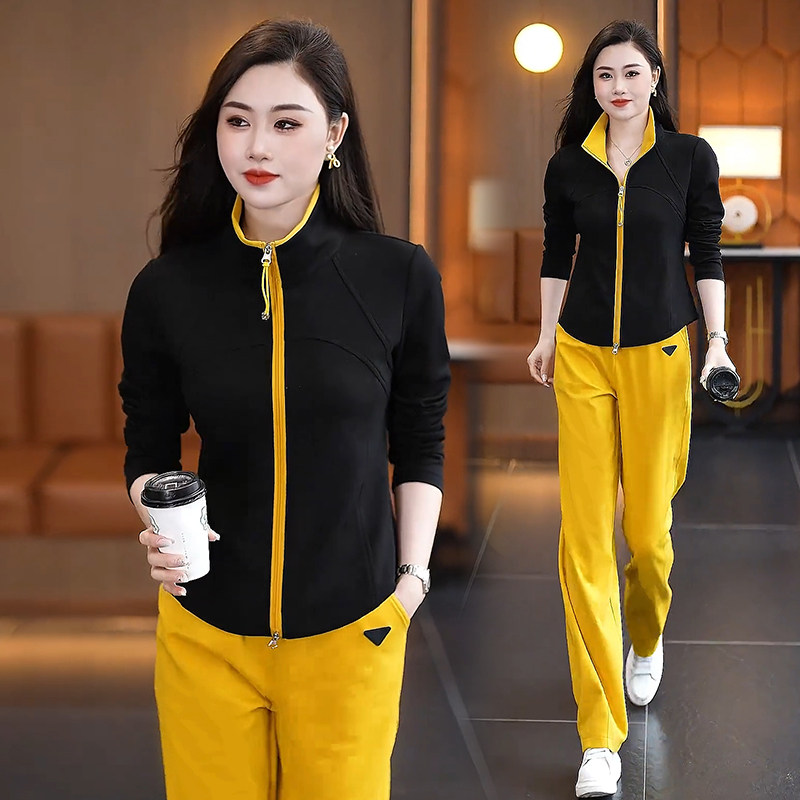 2025春秋新款休闲运动服套装女韩版立领修身显瘦直筒阔腿裤两件套