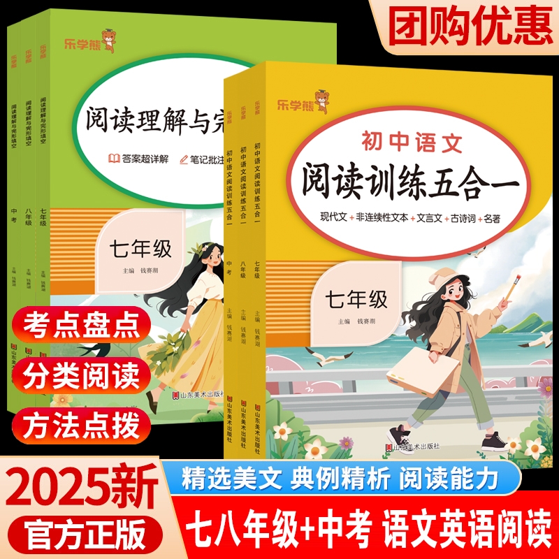 2025版初中英语阅读理解与完形填空专项训练练习册七八九年级中考英语词汇语法重难点批注答题技巧模板初一初二初三必刷题乐学熊
