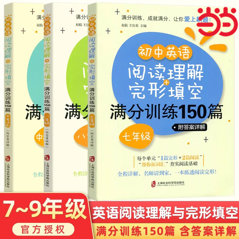 初中英语阅读理解与完形填空满分训练150篇基础提高版六年级七八九年级英语语法首字母填空专项训练书练习册 上海社会科学院出版社