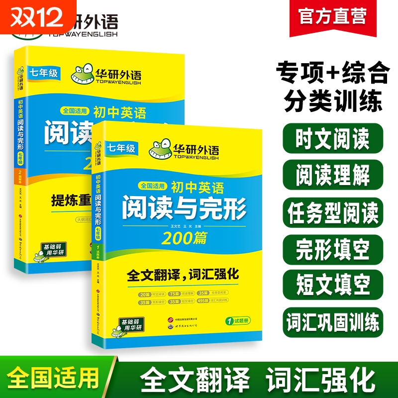 华研外语初中英语阅读理解与完形填空200篇初一新版教材七年级完型填空与阅读专项训练时文同步练习册教辅资料词汇单词综合英文