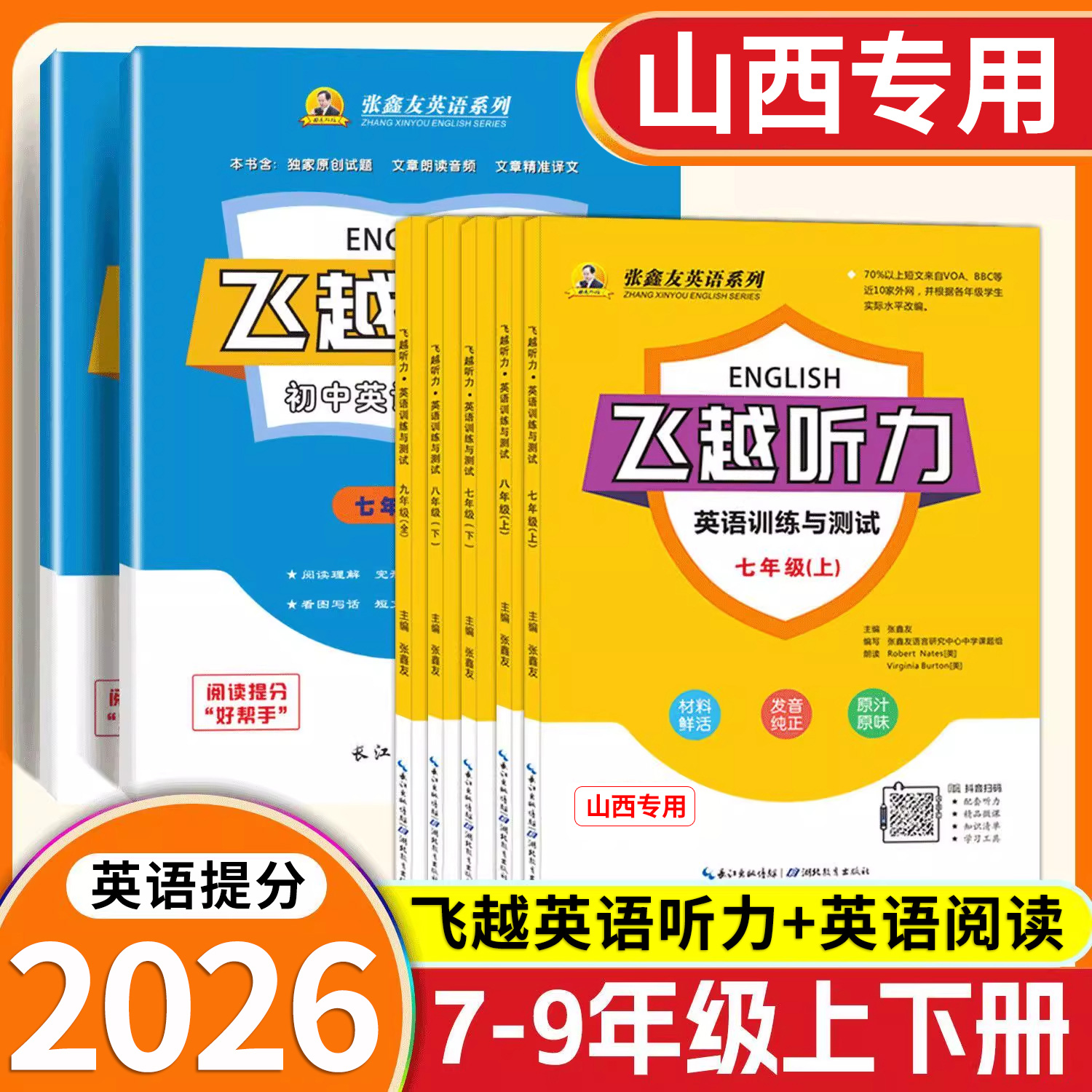 山西专用张鑫友飞跃英语听力专项训练书七八九年级上下册初中英语阅读理解与完形填空专项训练必刷题英语词汇中考英语单词必背飞越