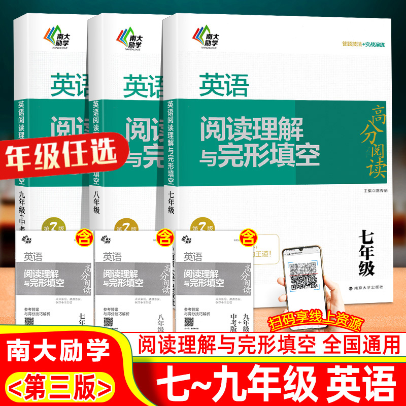 【第三版 年级任选】初中英语阅读理解与完形填空 全国通用 七八九年级789年级 高分阅读 初中英语语法组合训练 南大励学