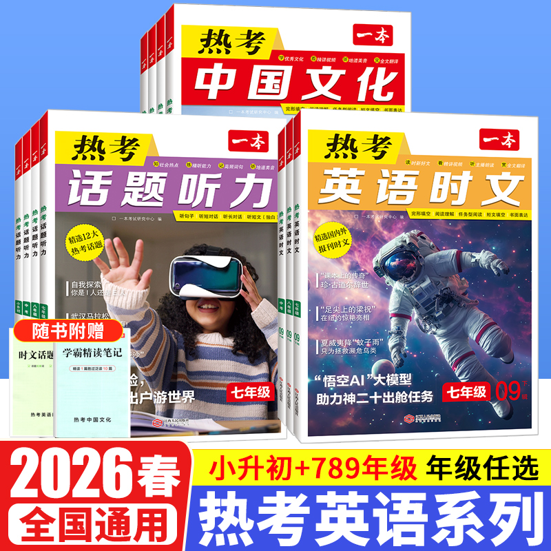 2026版一本热考英语时文阅读七年级八年级九年级上册下册初中英语阅读理解与完形填空短文词汇中考英语初一二三阅读理解专项训练书