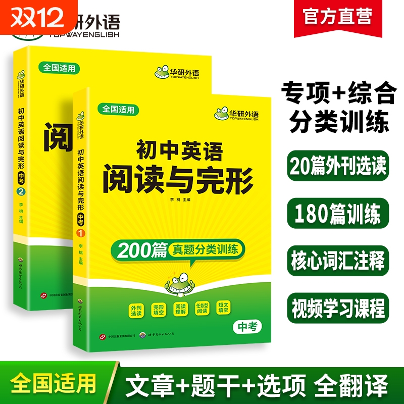 华研外语官方旗舰店初中英语阅读理解与完形填空200篇初二专项训练2025新版英语时文阅读八年级短文填空任务型阅读教材同步练习册