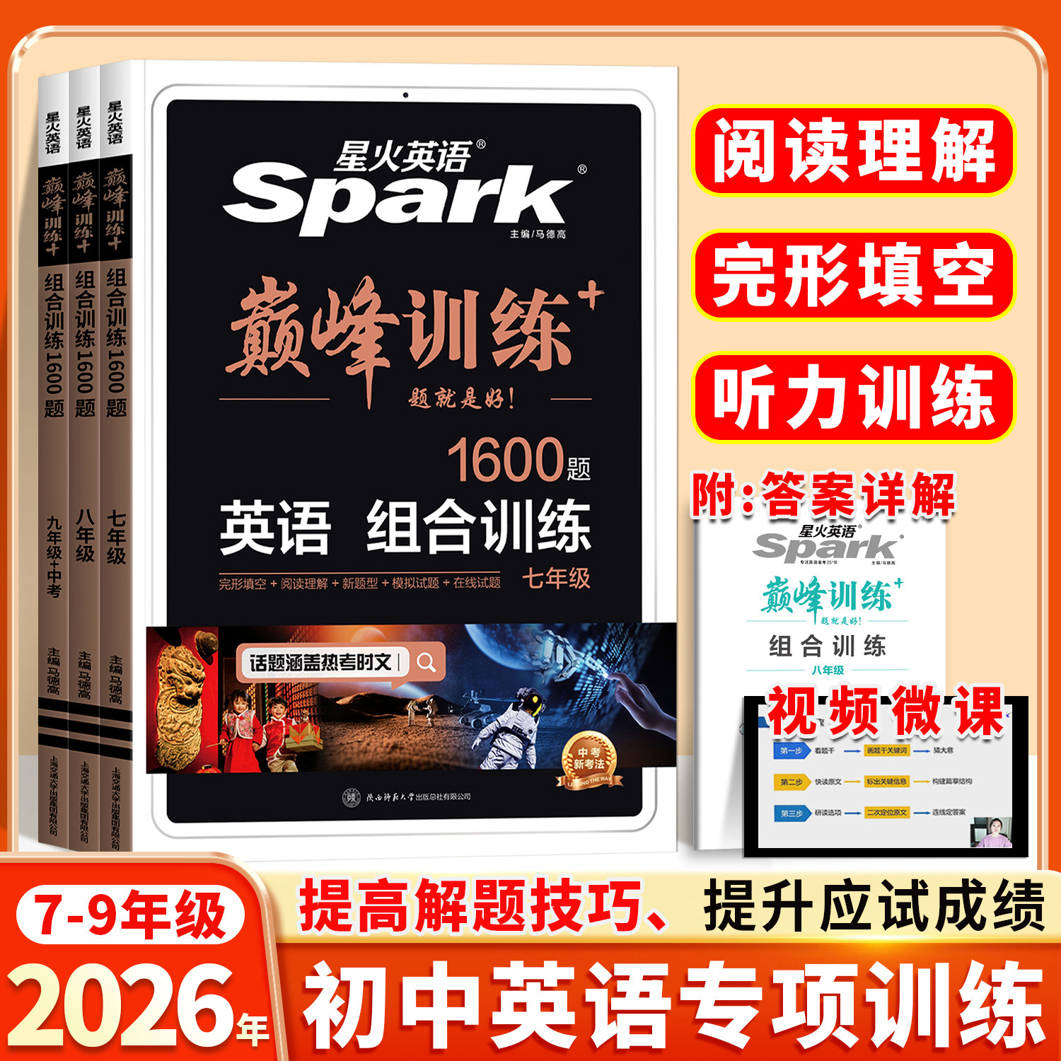 2026适用星火英语巅峰训练七八九年级中考组合训练阅读理解完形填空英语听力英语专项突破训练789初一二三初中英语复习资料练习册