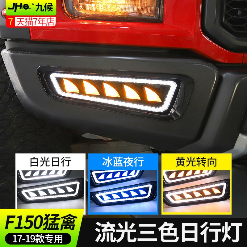 九候猛禽f150改装17-2020款汽车日行灯加流水转向灯LED三色日行灯