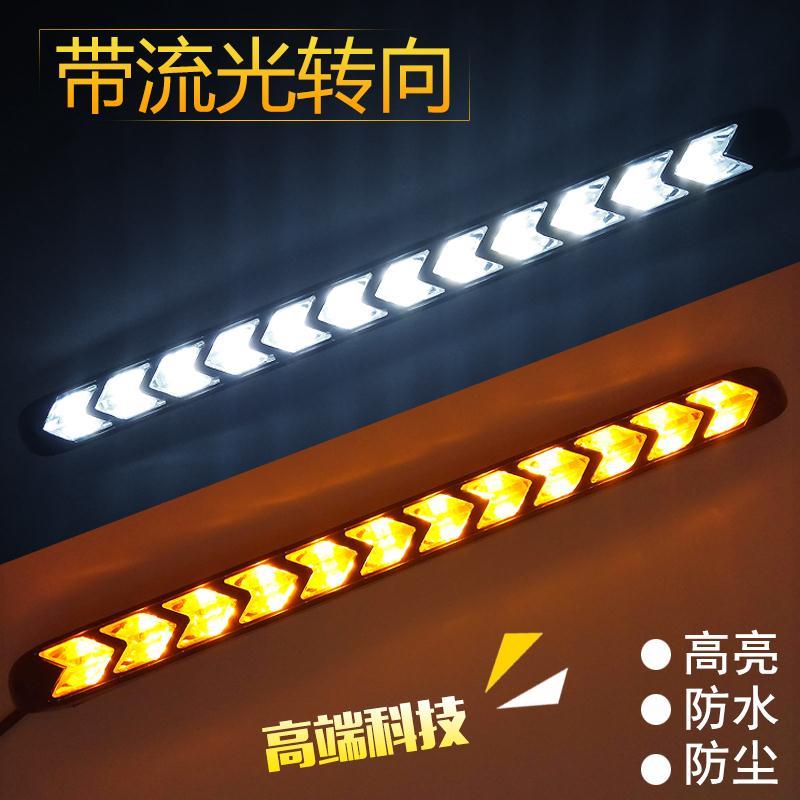 汽车日行灯改装流光流水转向灯通用车外灯高亮防水LED日间行车灯