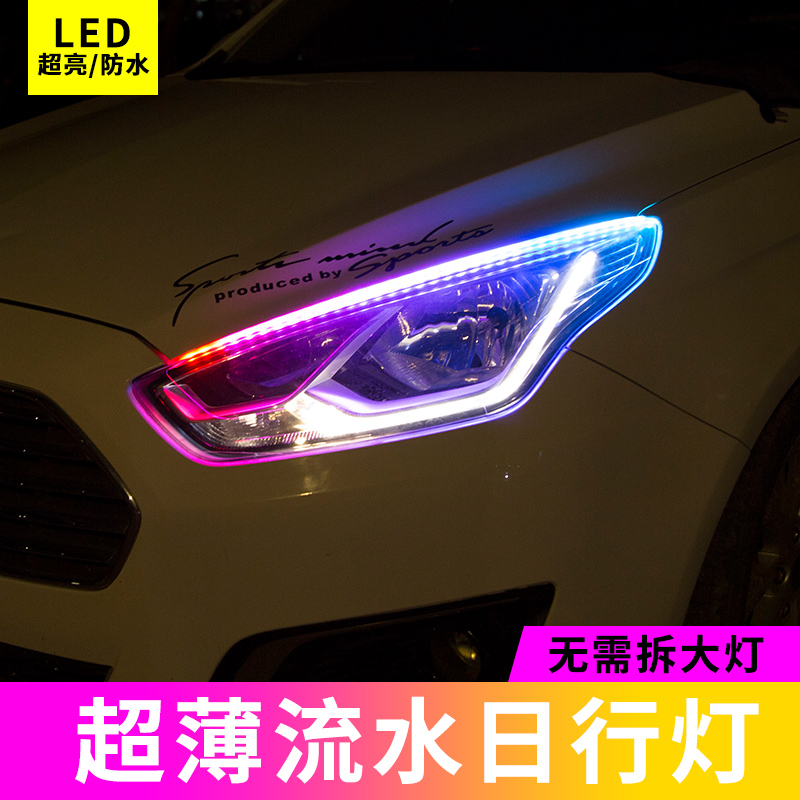 汽车日行灯流水转向灯启动扫描超亮装饰灯眉改装七彩导光条LED灯