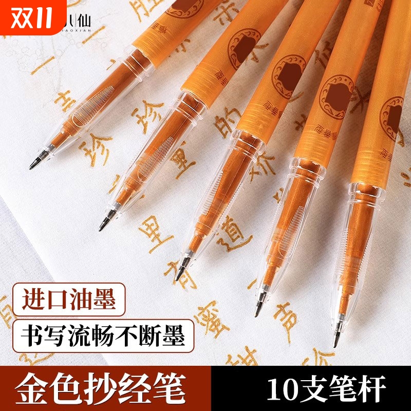 金色抄经笔抄写笔芯抄经笔檀香味无味签字笔临摹签字笔抄写本0.7