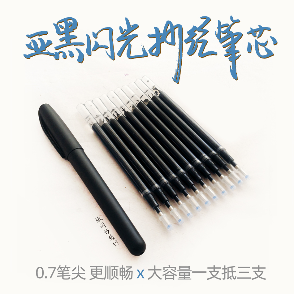 [纸间抄经坊] 黑色抄经笔芯闪光黑金色巨无霸签字笔芯 0.7细笔尖