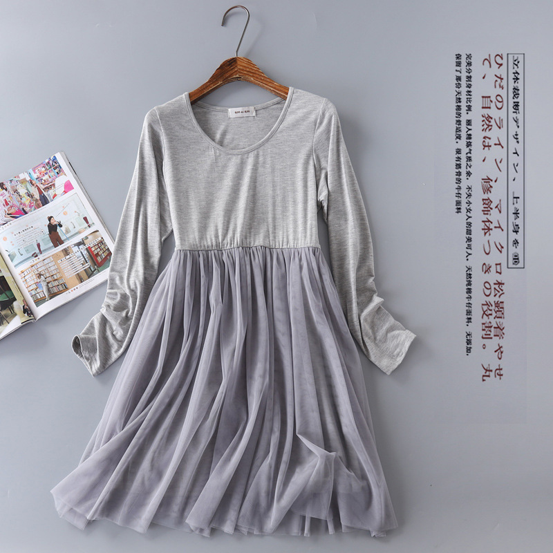 秋冬新款重工W花内搭衬裙莫代尔拼接网纱连衣裙韩版蕾丝打底长裙