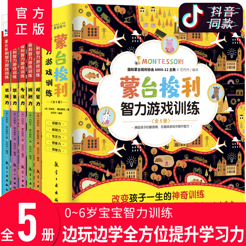 蒙台梭利早教全书智力游戏训练5册0-6岁儿童思维培养益智启蒙开发幼儿游戏力专注力育儿百科蒙氏早教智力训练蒙特梭利家庭方案教育