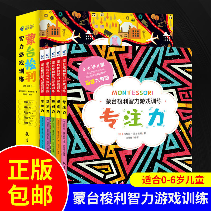 全5册蒙台梭利智力游戏训练书籍0-6岁蒙台梭利早教全书思维培养儿童专注力思维训练家庭训练认知蒙氏手册教育孩子育儿书籍父母*读