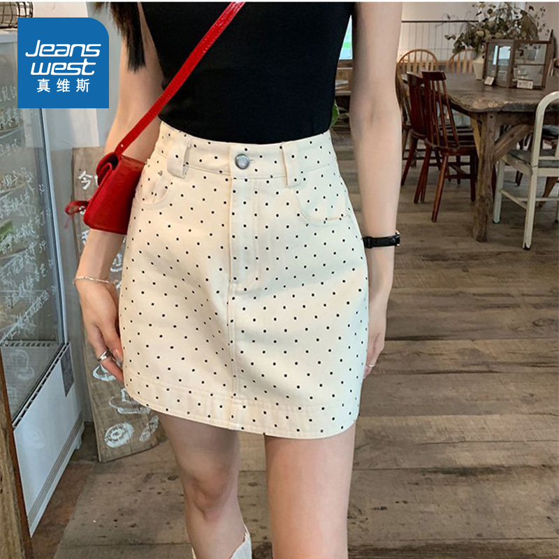 KF真维斯2025夏季波点图案女士休闲裤子时尚沙滩风女款牛仔短裙