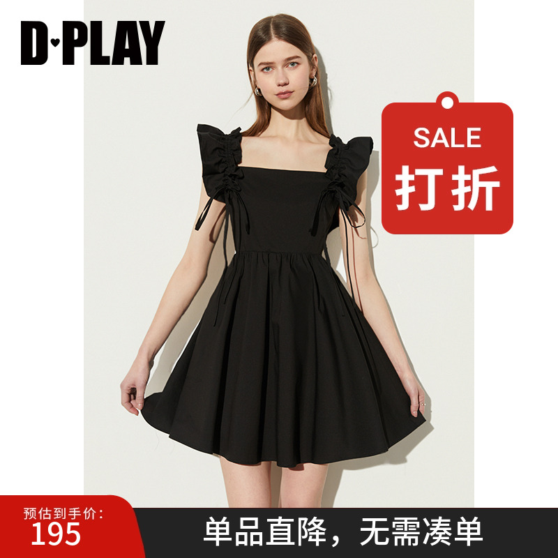 DPLAY2025年夏季气质法式黑色连衣裙女短袖收腰小黑裙短裙沙滩裙