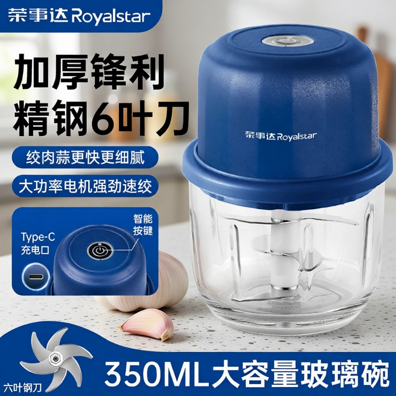 荣事达打蒜器电动家用捣蒜器蒜蓉打蒜泥神器小型绞肉机压蒜器玻璃
