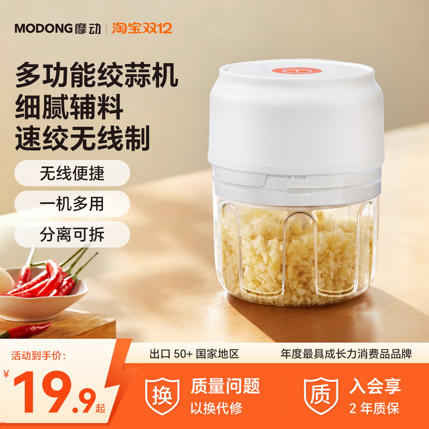 摩动电动打蒜泥神器家用小型绞肉机无线充电打蒜器搅蒜泥机捣蒜器