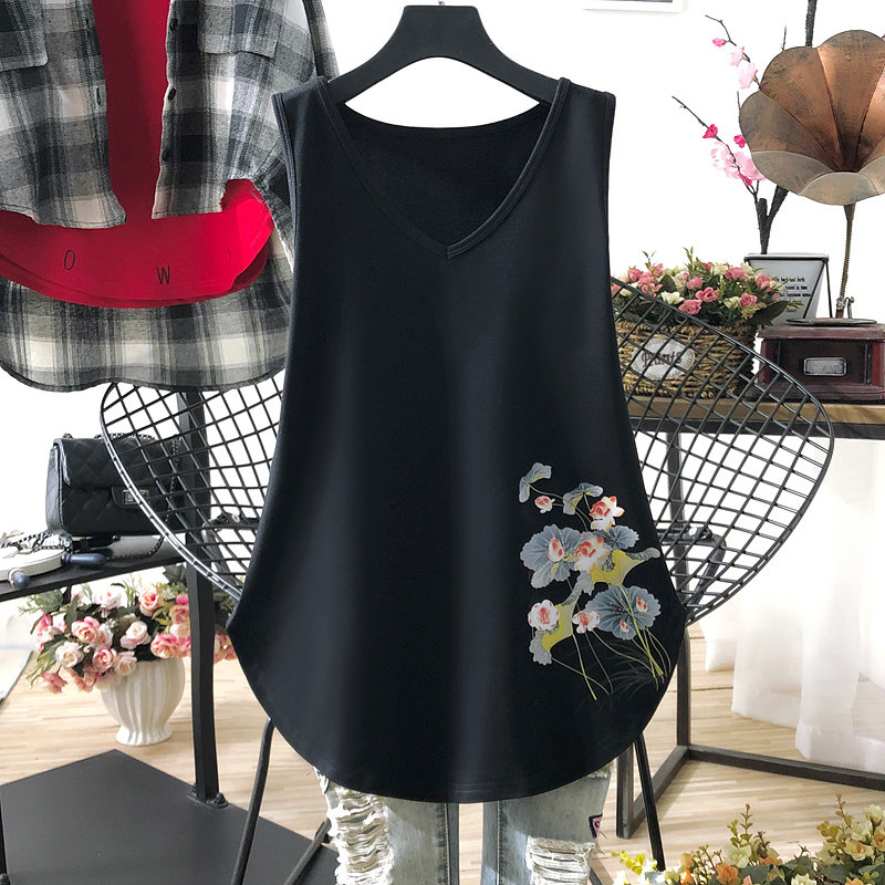 秋冬宽松无袖字母印花民族风吊带背心女大码微胖中长款打底上衣潮