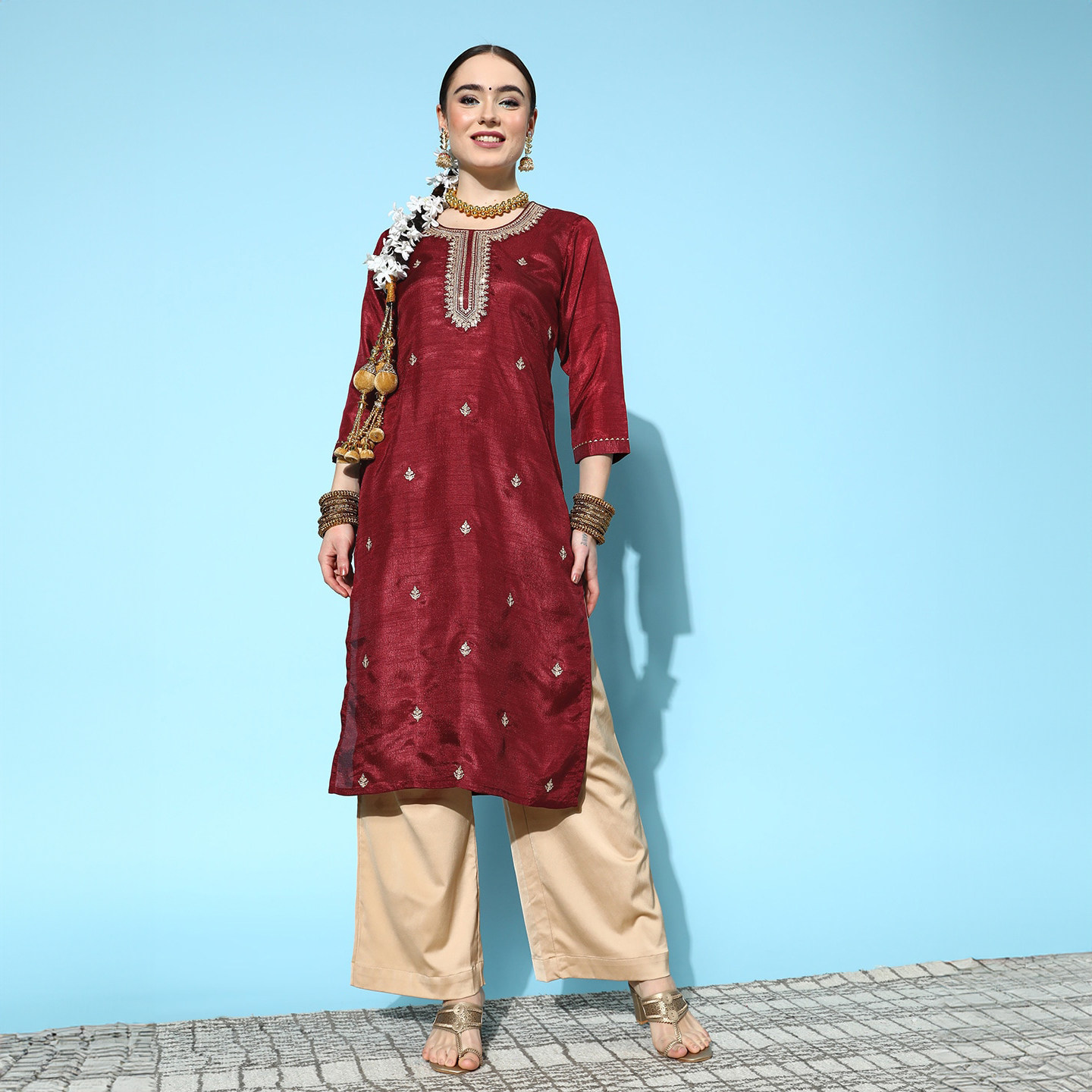 B8-1-2印度进口民族风库塔上衣丝绵刺绣中长款上衣女装酒红色 007