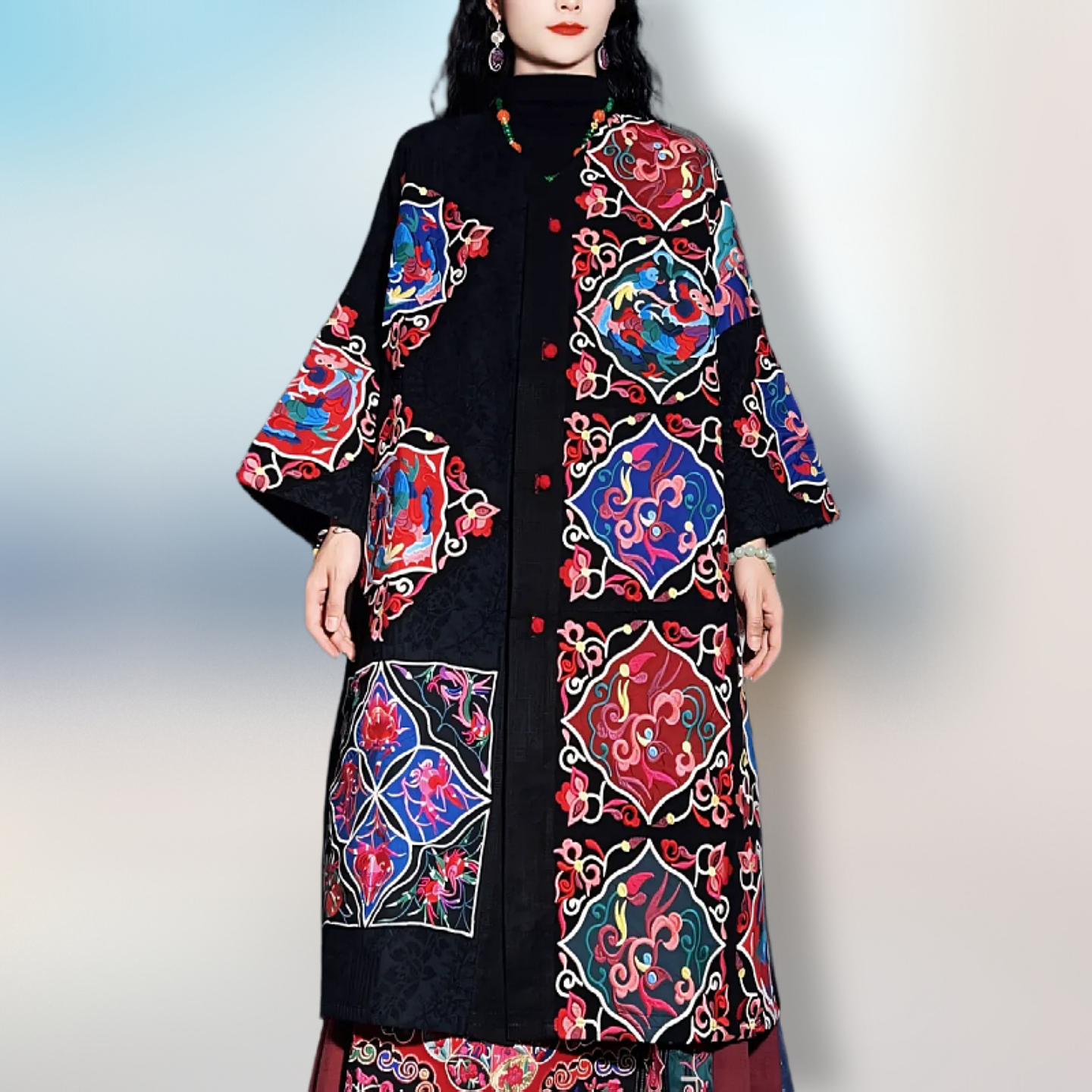 民族风复古刺绣棉麻上衣女春秋中长款盘扣开衫中国风薄款风衣外套