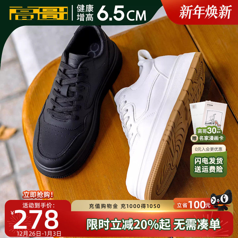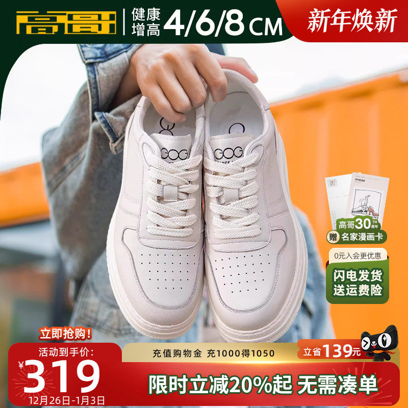 高哥增高鞋8cm新款休闲板鞋皮面运动男鞋轻便厚底内增高小白鞋男