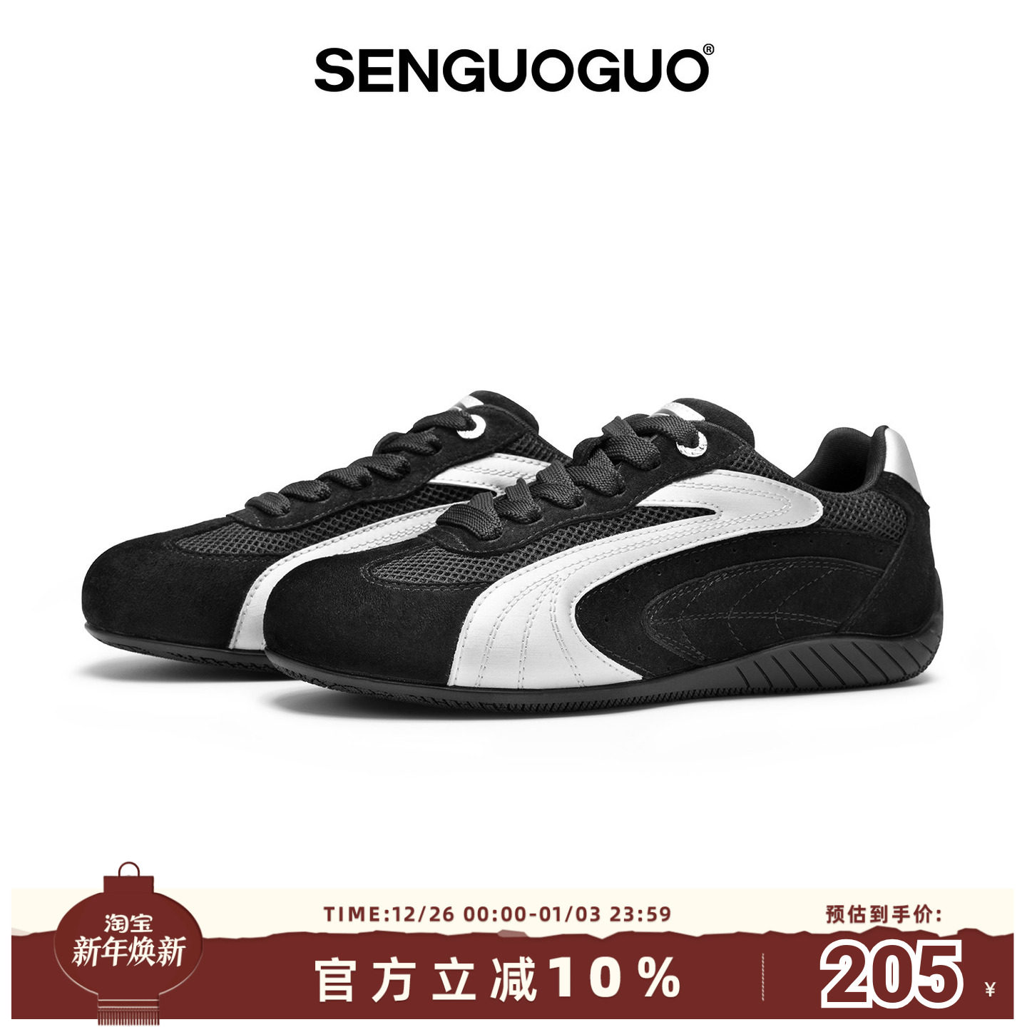 森果果 赛车鞋/银黑色德训鞋男女同款2025冬季新款内增高鞋子板鞋