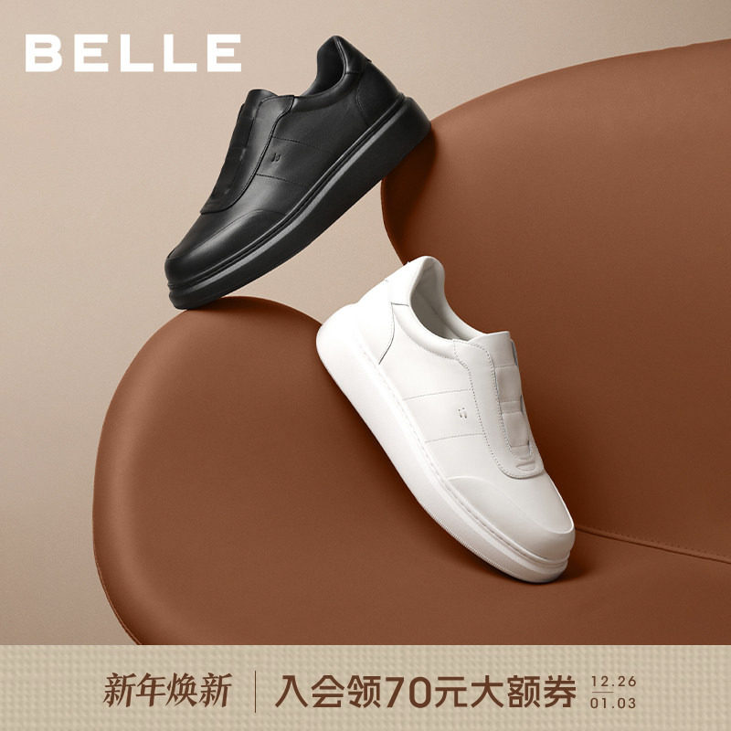 百丽男士高级小白鞋内增高厚底2026春新款牛皮休闲板鞋男D5R04AM6