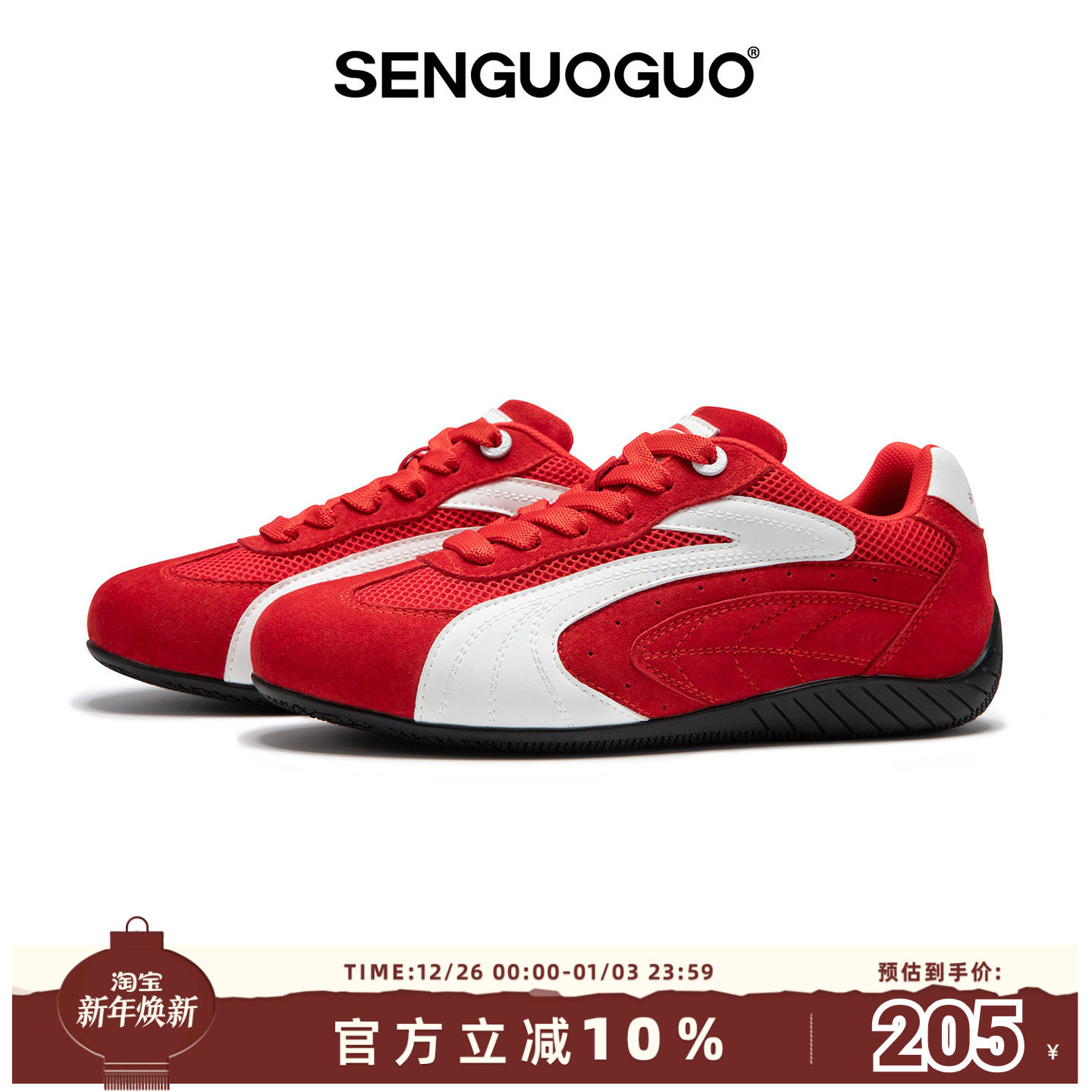 森果果 赛车鞋/白红色德训鞋男2025冬季新款网面内增高鞋子板鞋女