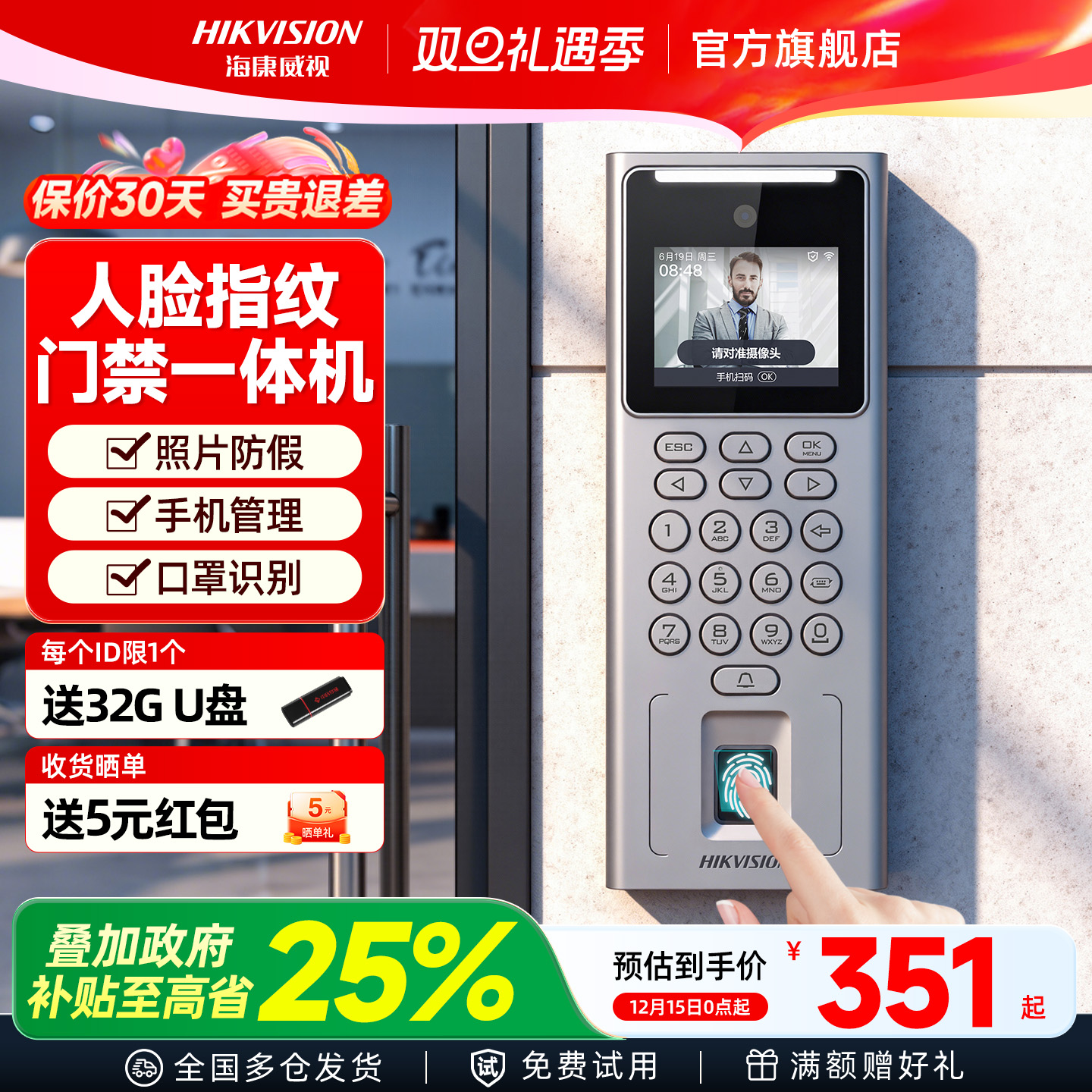 海康威视人脸指纹门禁系统一体机公司上班打卡考勤刷脸识别打卡机