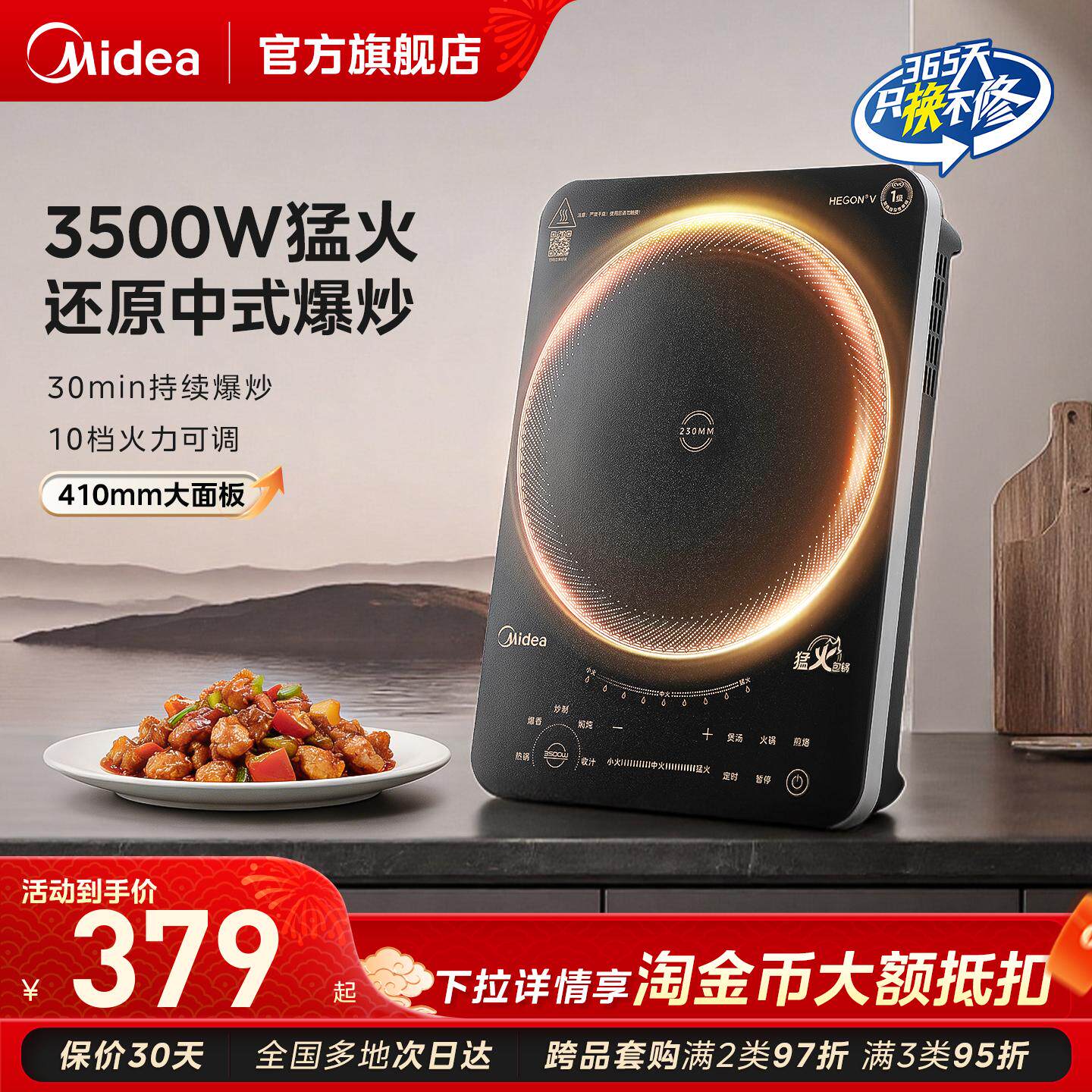 美的3500W大功率旋钮电磁炉家用官方正品爆炒火锅全套新品电磁灶