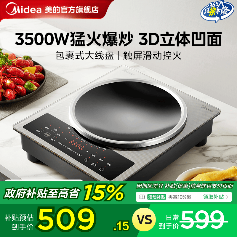 美的凹面电磁炉家用3500W大功率IH炒菜锅专用猛火灶官方旗舰正品
