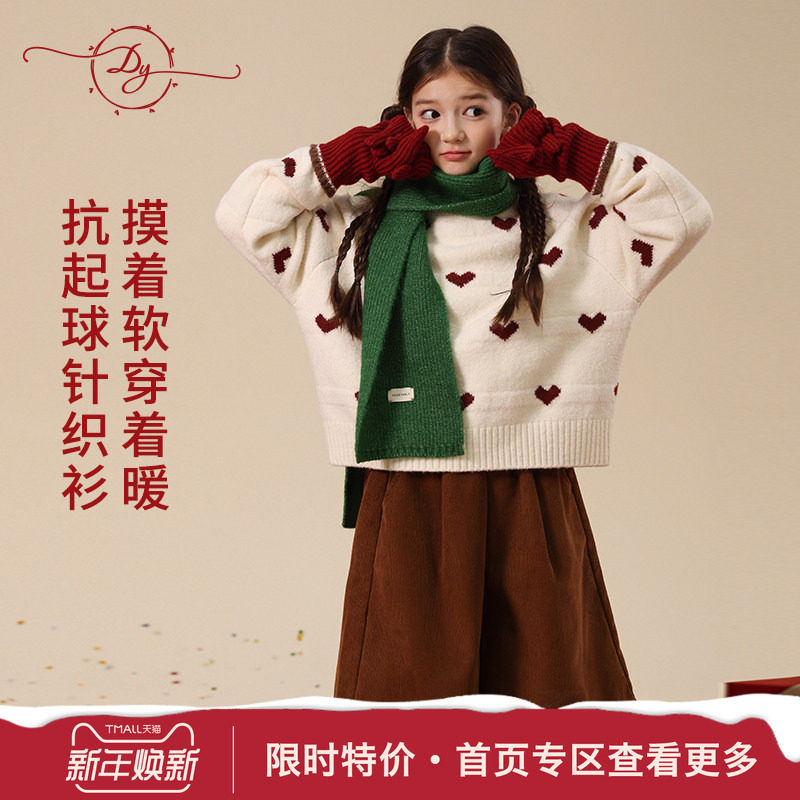 【特价】女童保暖毛衣抗起球2025冬季新款童装女孩儿童爱心针织衫