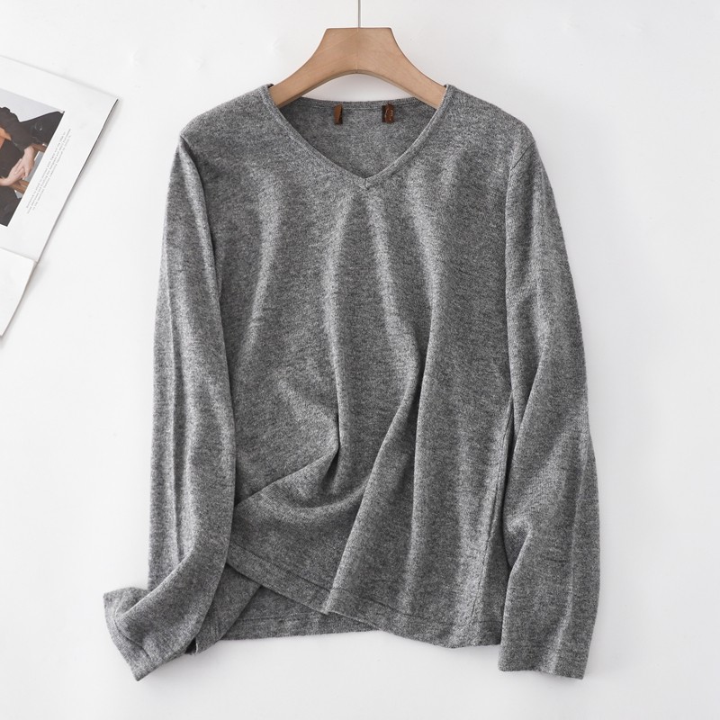 国产绒特价~秋冬保暖100山羊绒V领套头长袖打底衫针织衫毛衣女