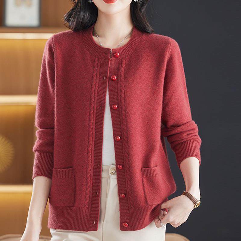 洋气中年纯色羊绒衫毛衣女开衫秋冬加厚大码妈妈针织衫外套女短款