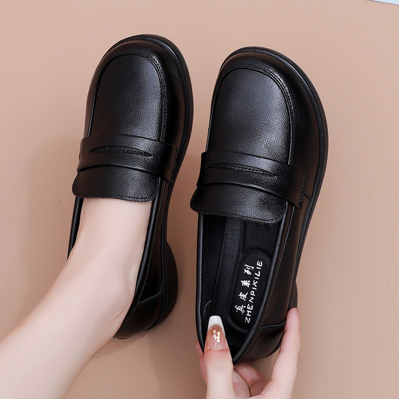 2025春新款软面牛皮妈妈单鞋牛筋低跟软底中老年懒人真皮鞋四季女