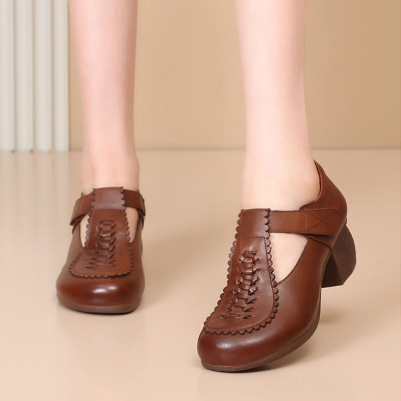 复古单鞋粗跟百搭真皮民族风妈妈牛皮鞋舒适软底中跟奶奶鞋春秋款