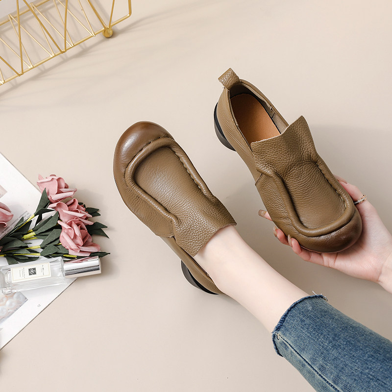 头层牛皮春秋款小皮鞋中跟单鞋软底妈妈鞋真皮复古牛筋底百搭女鞋