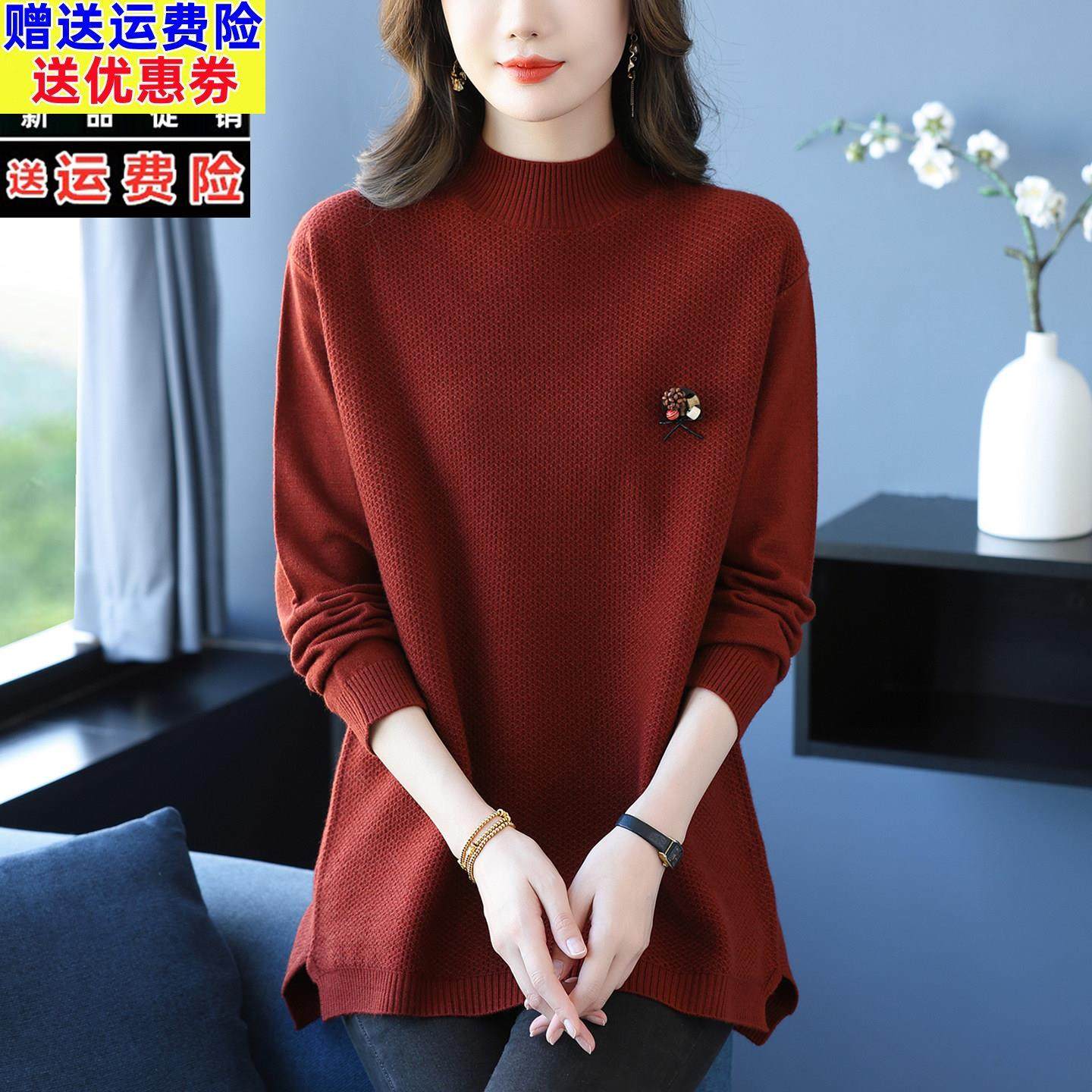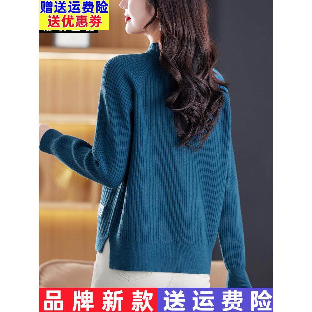 品牌26妈妈羊毛衫女秋冬装下摆开叉半高领毛衣短款加厚内搭打底衫