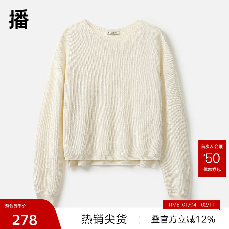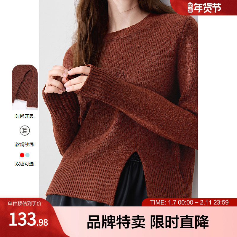 【播奥莱】播软糯圆领薄款波嘻毛衣女秋开叉下摆针织衫BDR8SD3387