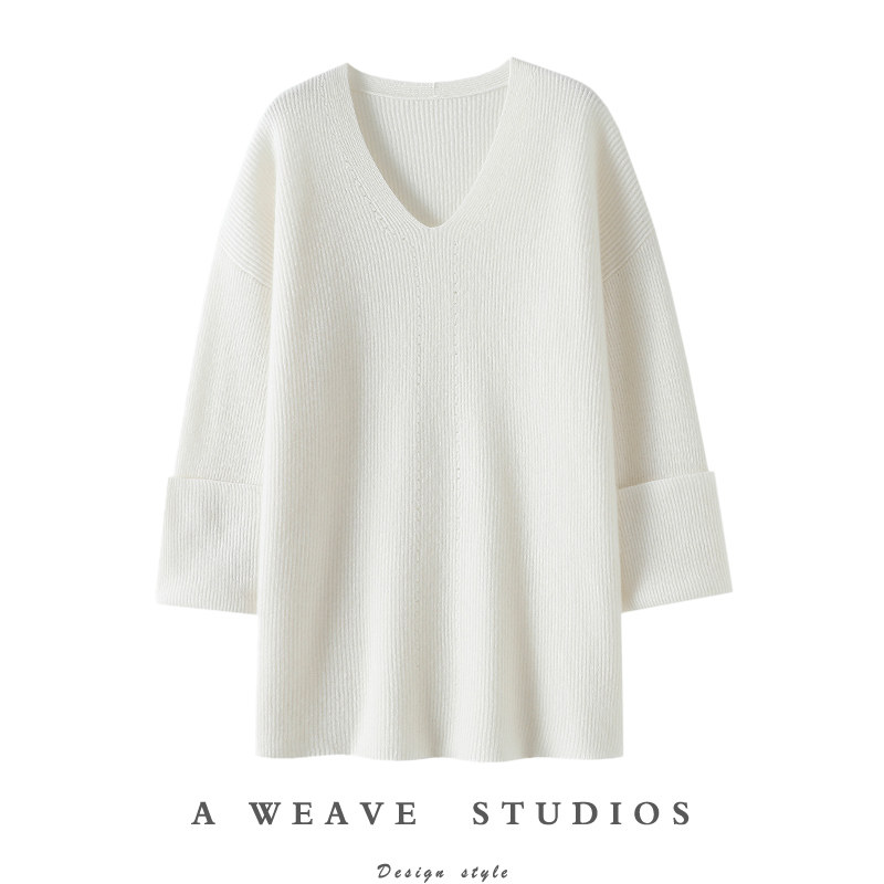 万丽(服饰)女士毛衫针织V领套衫下摆开叉百搭显瘦2024春新款