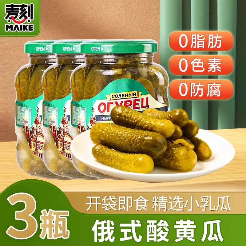 俄式乳酸黄瓜3罐 0脂肪俄式风味罐头原装腌小酸小青瓜西餐腌黄瓜